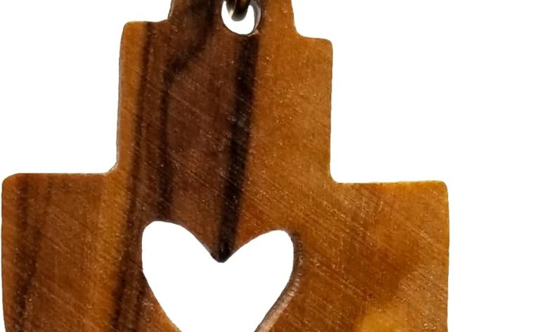Heart Cross, Wooden Cross Necklace for Men & Women, Certified Holy Land Olive Wood Orthodox Pendant Necklace from Bethlehem Israel, Christian & Catholic Religious Keepsake Gift