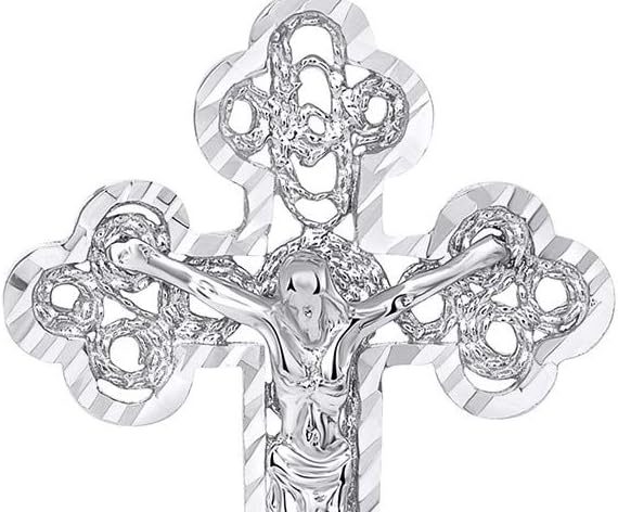 Religious by Jewelry America Solid 14k White Gold Filigree Eastern Orthodox Cross Crucifix Pendant