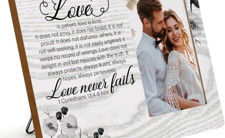 IAXIC Bridal Shower Gifts Wedding Gifts for Couples Photo Frame Engagement Gift Christian Bible Verse Decor Rustic Picture Frames Black And White Flowers Wooden Picture Frames
