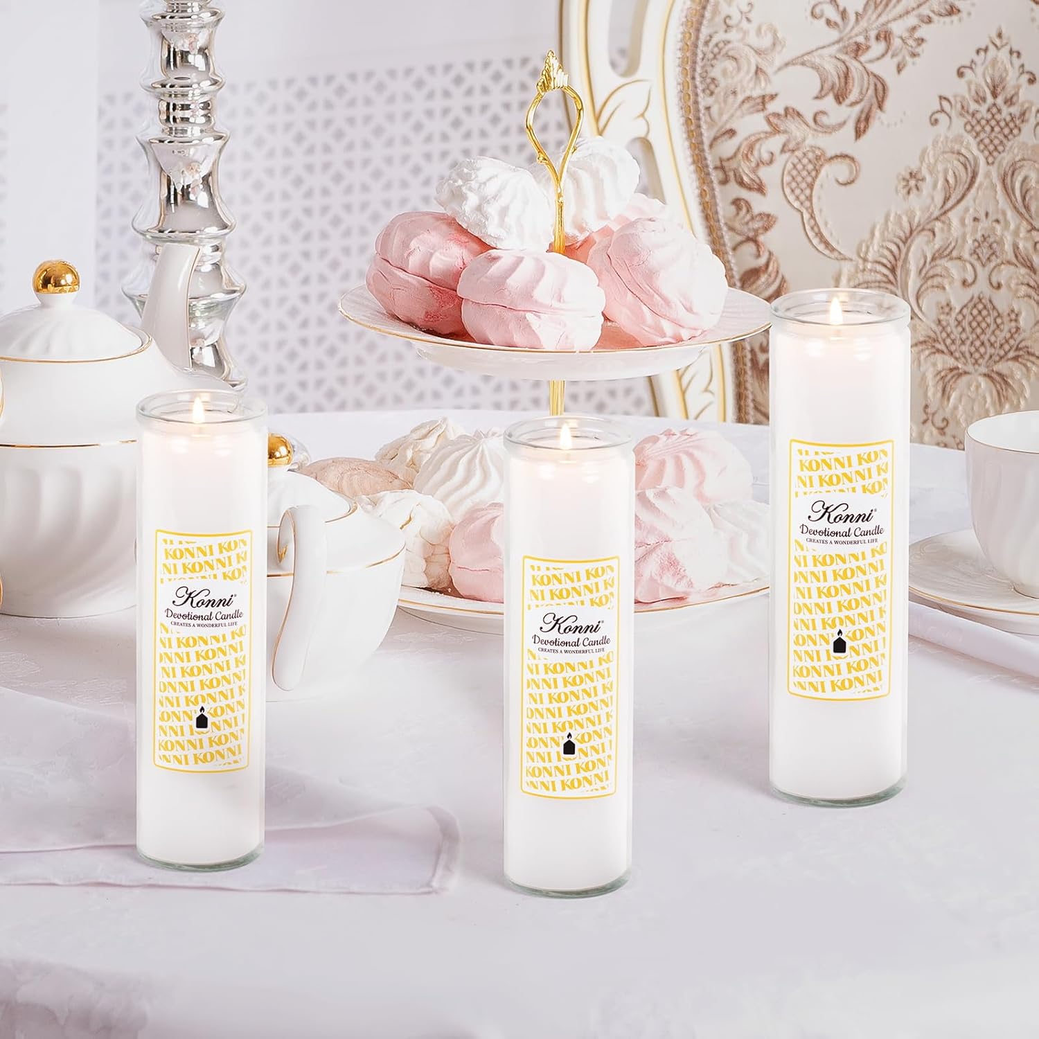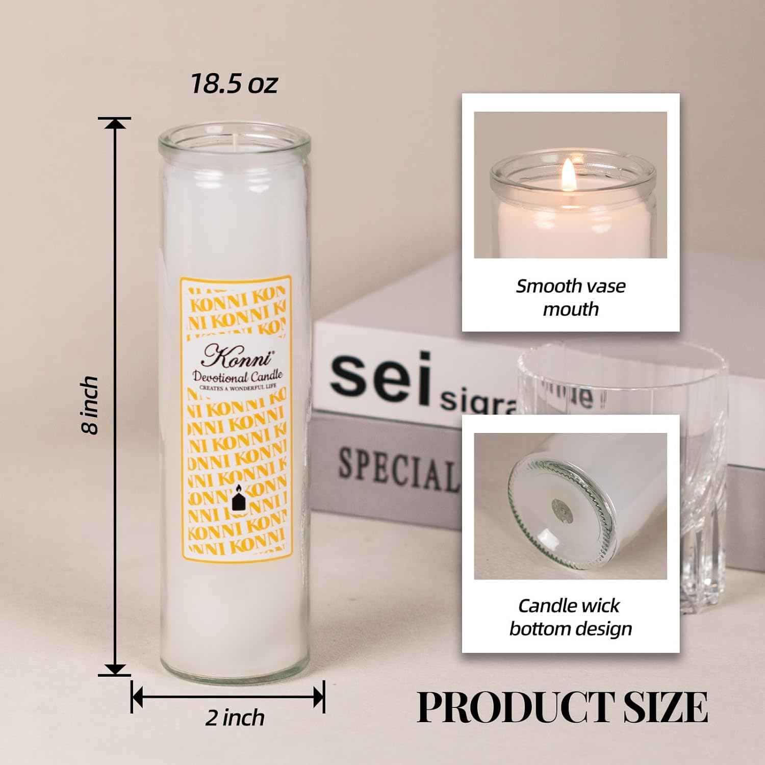 KONNI 2×8 Inch White Pillar Candles in Glass Set of 3, 7 Day Devotional Prayer Candle, Unscented Religious Candles, 105 Hours Emergency Long Burning, Ideal for Memorials, Vigil, Blessing