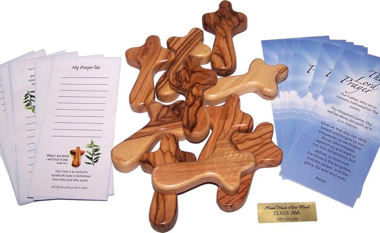 Holy Land Market 10 Small Olive Wood Hand Crosses – 2.5 Inch Pocket Palm Crucifix | Handmade Jerusalem, Bethlehem Israel Crosses – Gifts by Christians with Certificates