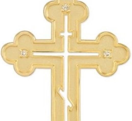 14k Yellow Gold Diamond Pendant Eastern Orthodox Cross Charm Pendant
