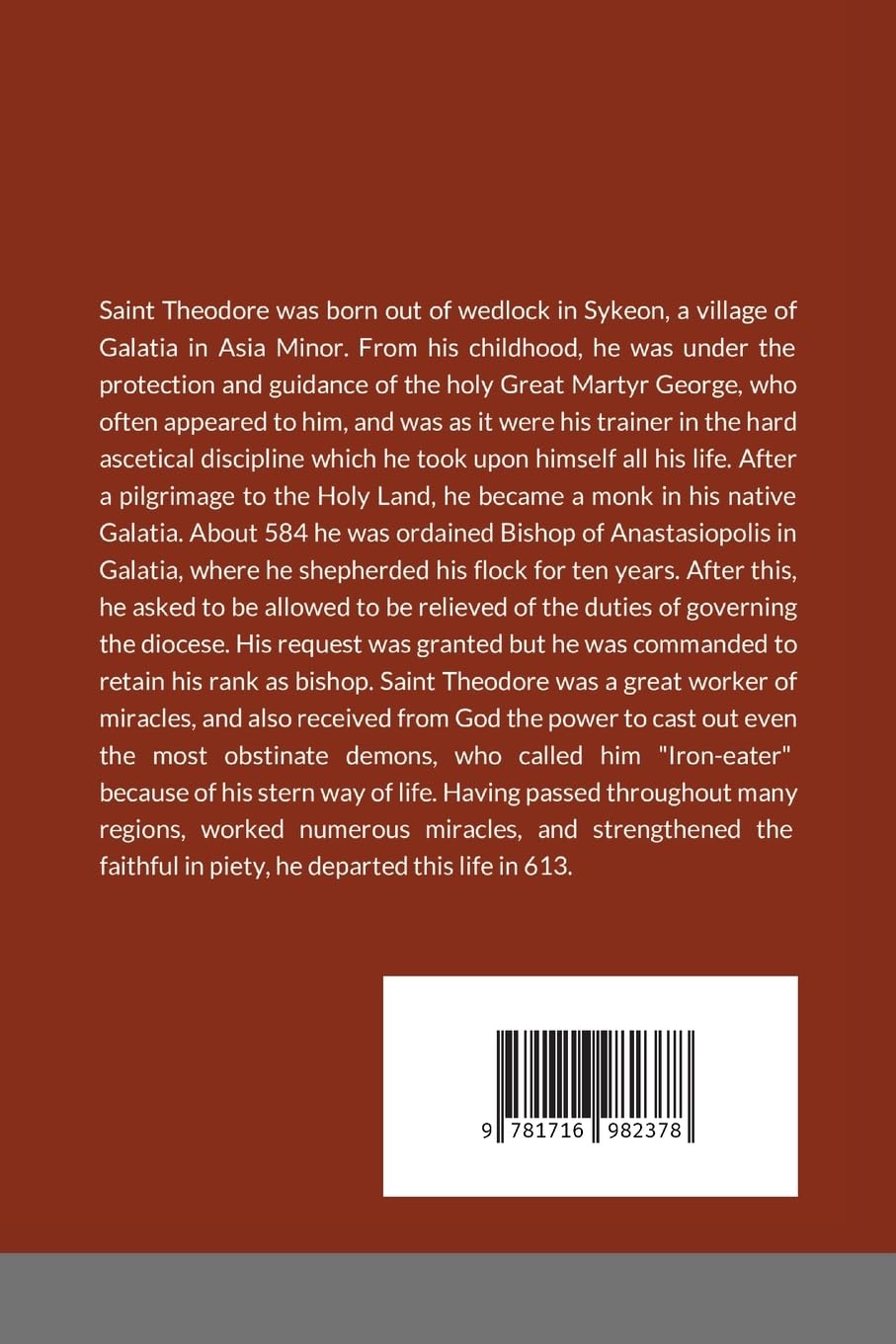 Saint Theodore was born out of wedlock in Sykeon, a village of Galatia in Asia Minor. From his childhood, he was under the protection and guidance of the holy Great Martyr George, who often appeared to him, and was as it were his trainer in the hard ascetical discipline which he took upon himself all his life. After a pilgrimage to the Holy Land, he became a monk in his native Galatia. About 584 he was ordained Bishop of Anastasiopolis in Galatia, where he shepherded his flock for ten years. After this, he asked to be allowed to be relieved of the duties of governing the diocese. His request was granted but he was commanded to retain his rank as bishop. Saint Theodore was a great worker of miracles, and also received from God the power to cast out even the most obstinate demons, who called him “Iron-eater” because of his stern way of life. Having passed throughout many regions, worked numerous miracles, and strengthened the faithful in piety, he departed this life in 613.