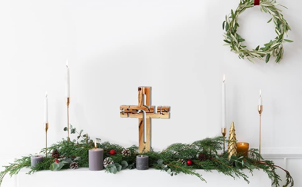 AUTHENTIC OLIVE WOOD FROM THE HOLY LAND: This beautifully crafted cross is made from premium olive wood from Bethlehem, Israel, showcasing its natural grain and warm, rich texture