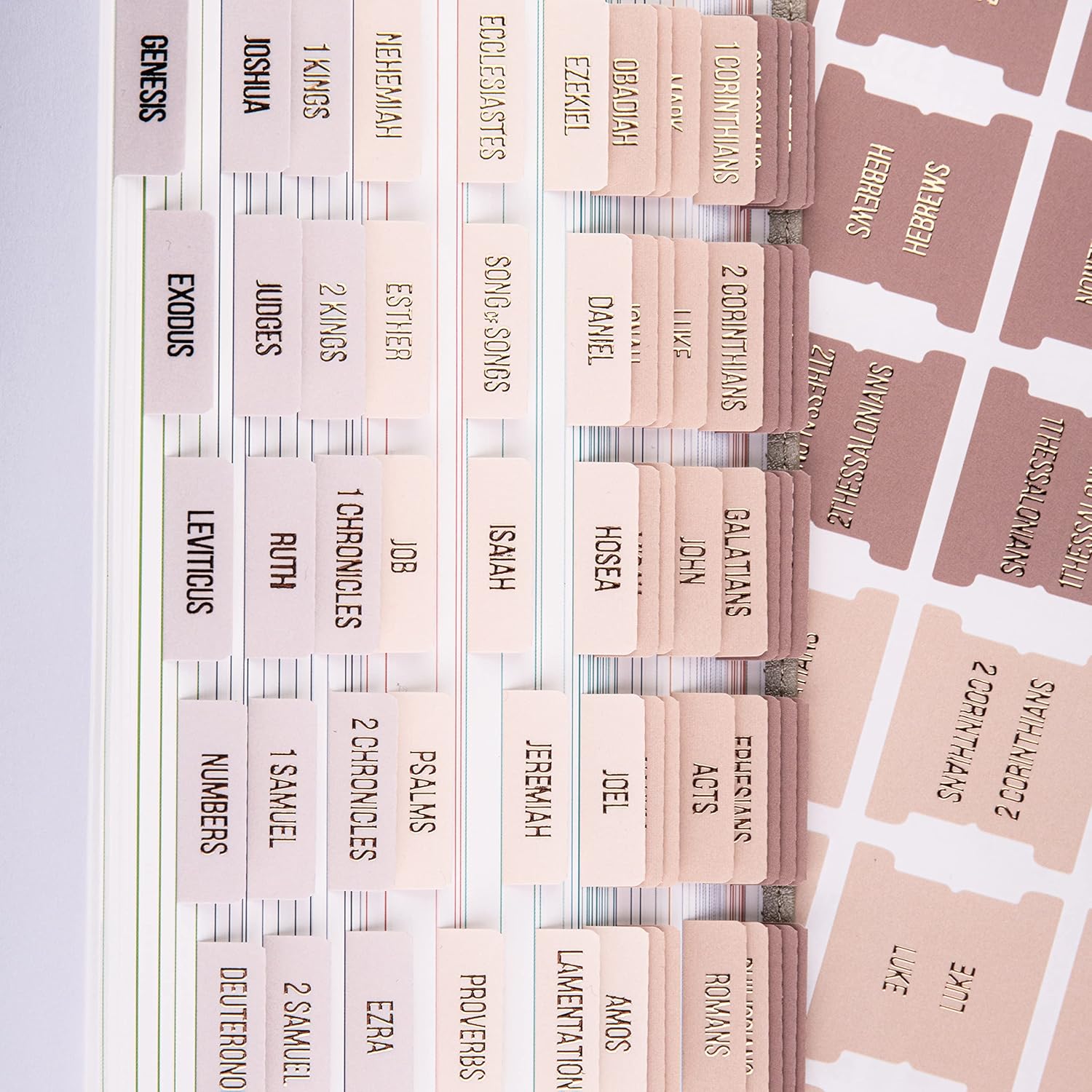 Easy to Apply, Alignment Guide Included: The peel-and-stick Bible index tabs are self adhesive, simply align them with the provided guide or place them creatively in your new Bible. The Bible stickers are pre-scored in the middle for easy folding.
