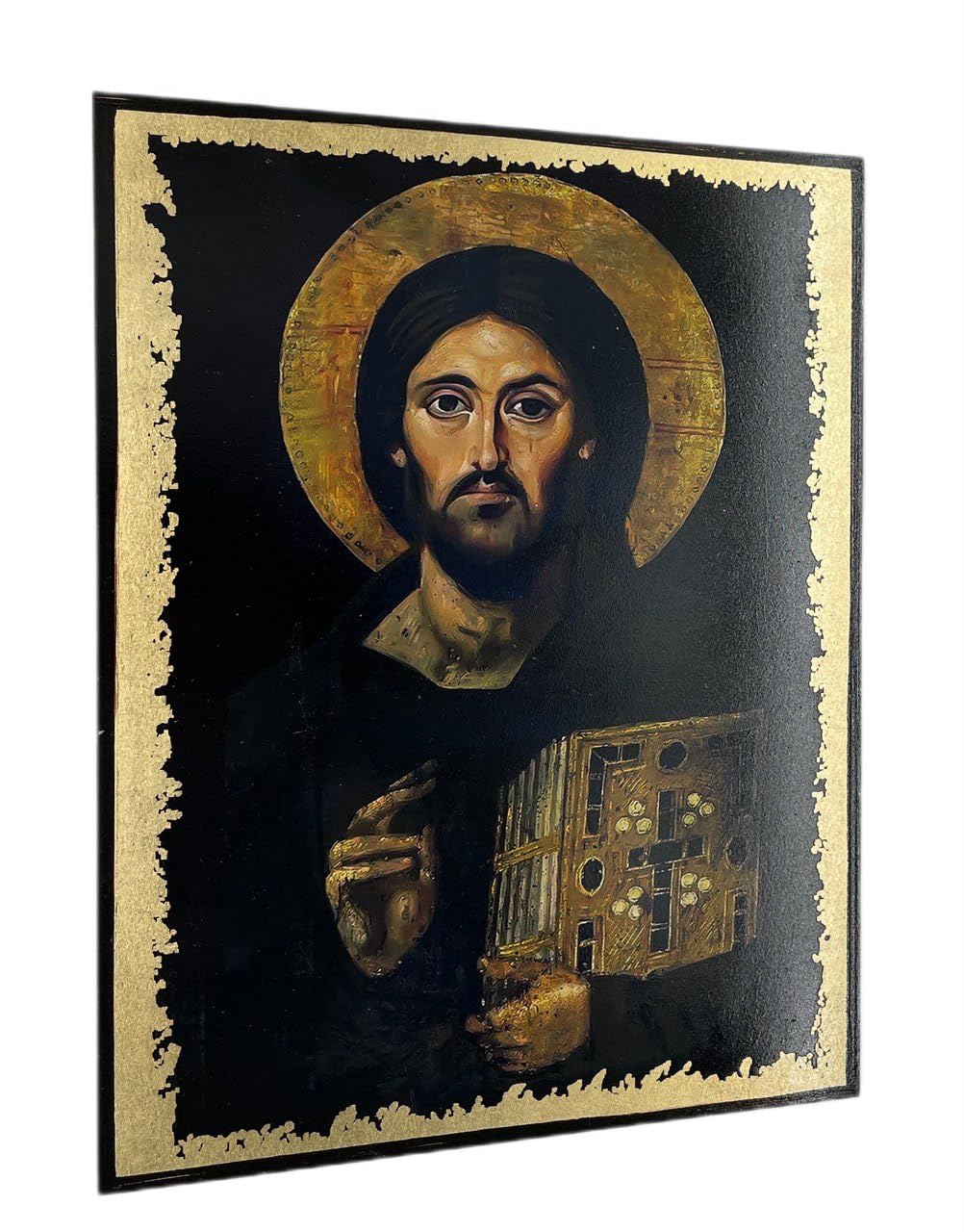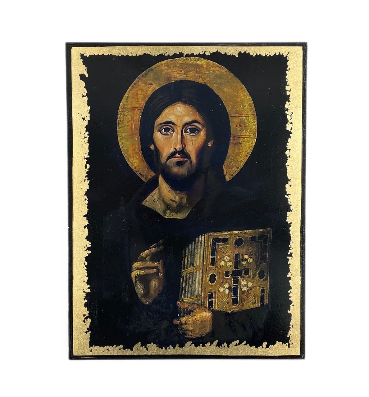 Jesus Christ Pantocrator Icon – Greek Orthodox Handmade Icon, Byzantine Art Wall Hanging Wood Plaque, Religious Decor, Christian Gift. (21 x 28 см (8,2″ x 11″))