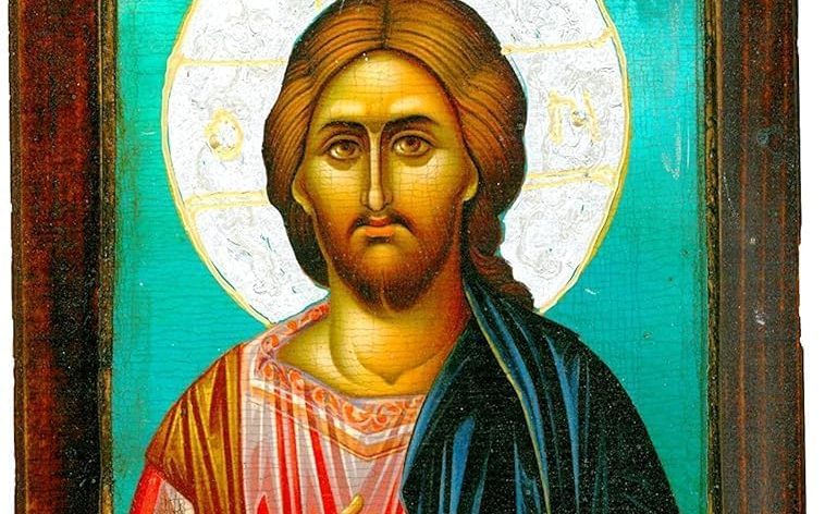 Handmade Greek Orthodox Icon of Jesus Christ on Canvas – Wooden Christian Wall Art – Byzantine Religious Decor / M50