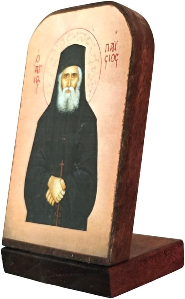 Handmade Wooden Greek Orthodox Wood Icon of Saint Elder Paisios / Mp5