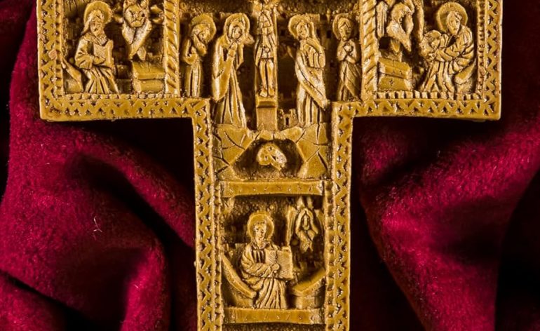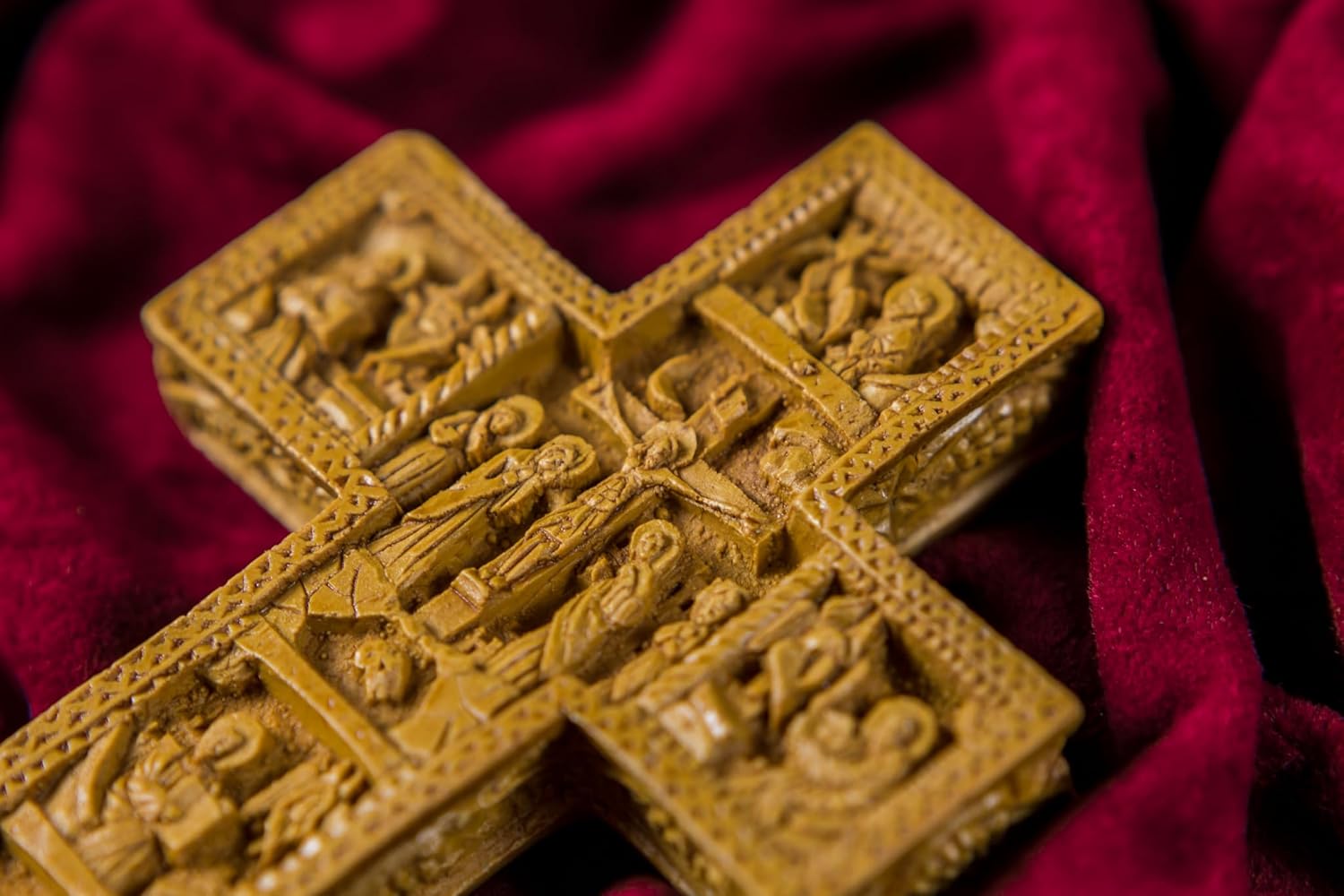 Cross with details and Ambelos Christian Orthodox Catholic Icon Plaque made with beeswax, mastic and incense