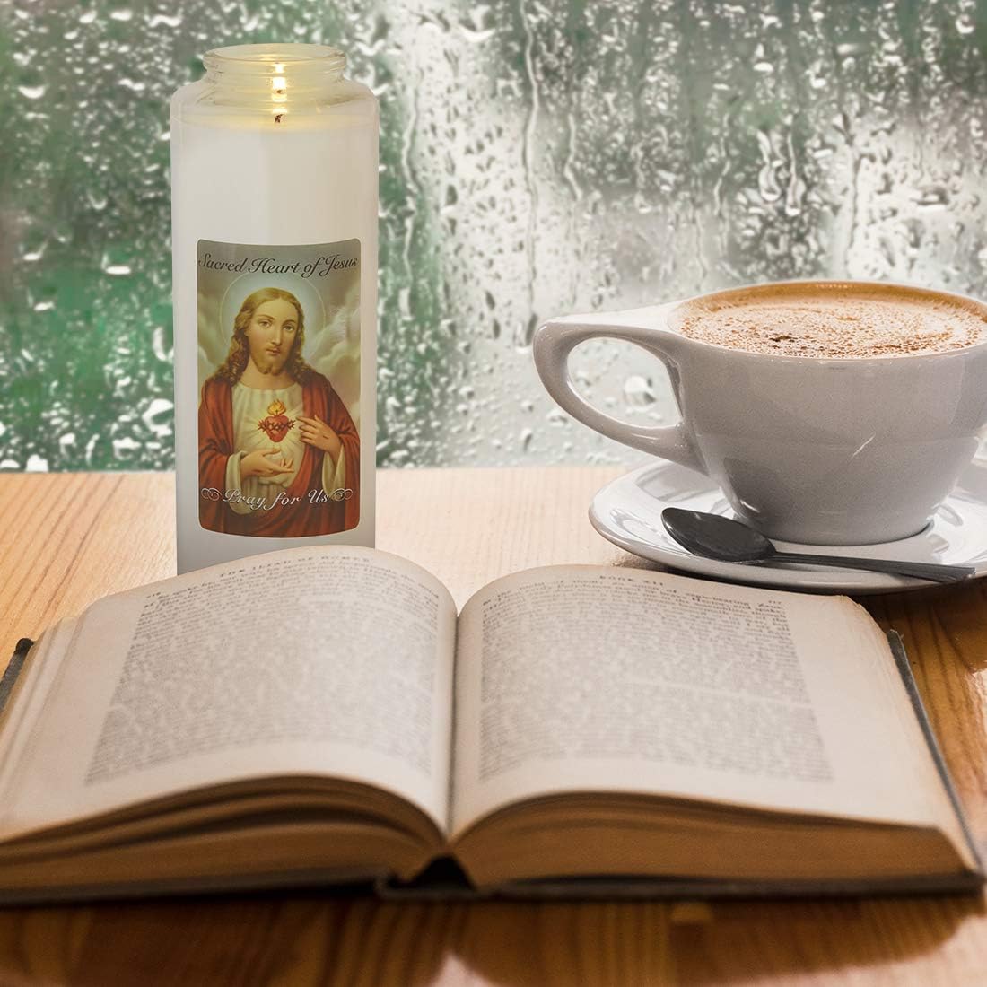 LONG-LASTING BURN High-Quality devotional candle burns continuously for 6 – 7 days; measures approximately 2.8-inches in diameter; stands 8.2-inches tall