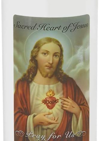 MADE IN MEDINA, OH USAQuality you can trust – superior paraffin wax and wicks that are 100% lead-free; Sacred Heart of Jesus decal on front