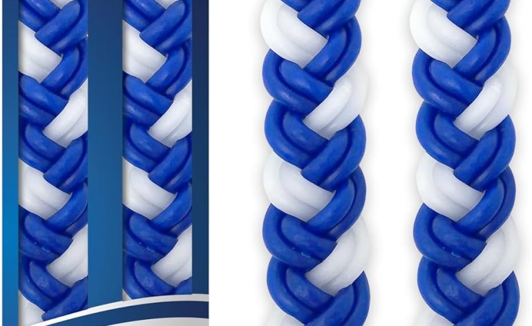 Havdalah Candle – Braided Blue and White – Flat Havdallah Candles – 2 Pack