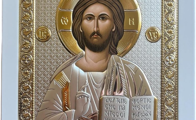 Silver Canvas (PR-4/001G/B) Jesus Christ Byzantine Silver Orthodox Icon/Greek Handmade (White, 7 1/2 x 6)