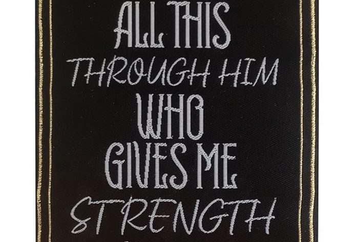 Pictor Gift Philipians 4:13 Metal and Fabric Polyester Decorative Wall Hanging Tapestry Art, Christ, Jesus Bible Story, Crucifixion, Church, Blessed, Red beaded with Cross