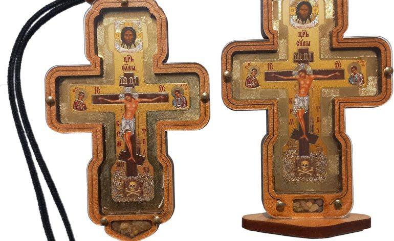 2 Pcs Byzantine Orthodox Cross Woden Christian Wall Table Crucifix 3,1” Crucifixion of Christ Virgin Mary Saint John