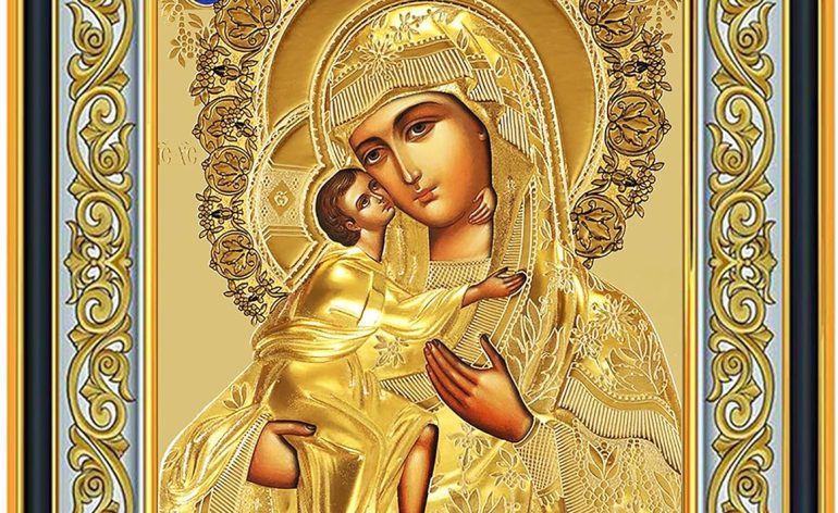 Virgin Mary Icon Madonna and Child Christ Icon – Beautiful Gold Foil Icon of Virgin Mary