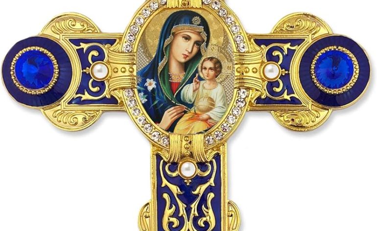 Virgin Mary Jesus Christ Eternal Bloom Russian Icon Byzantine Style Wall Cross Pendant Pearls 9 Inch, Red Red in the Christian East symbolizes Christ’s Resurrection and in the Christian West Red symbolizes the Holy Spirit. The center icon is our window to the eternal