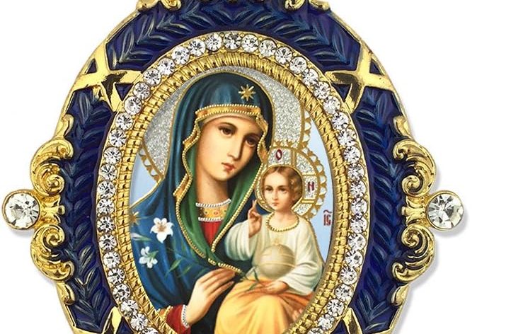 Religious Gifts – Blue Framed Catholic Orthodox Madonna and Child Christ Icon Pendant 5 3/4 Inch