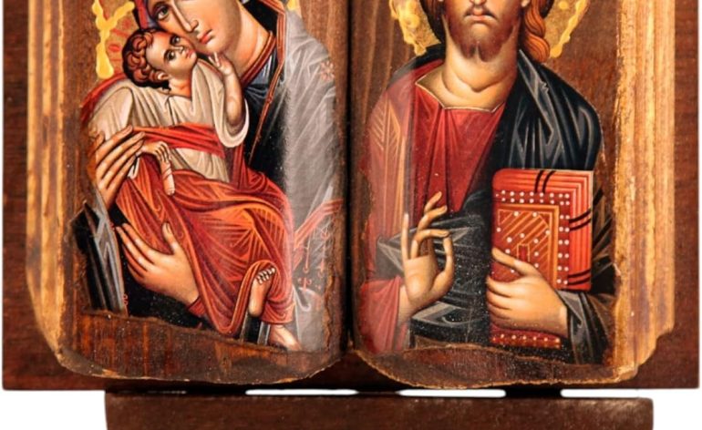 Wooden Greek Orthodox Icon of Jesus Christ & Virgin Mary WIDTH: 13 CM OR 5.11 IN LENGTH: 13 CM OR 5.11 IN Our icons are made of the highest quality silkscreen on specially treated wood with advanced aging techniques and other quality materials that ensure the waterproofing and protection from solar radiation. All the icons are unique and original, in high quality made by hand after your order.