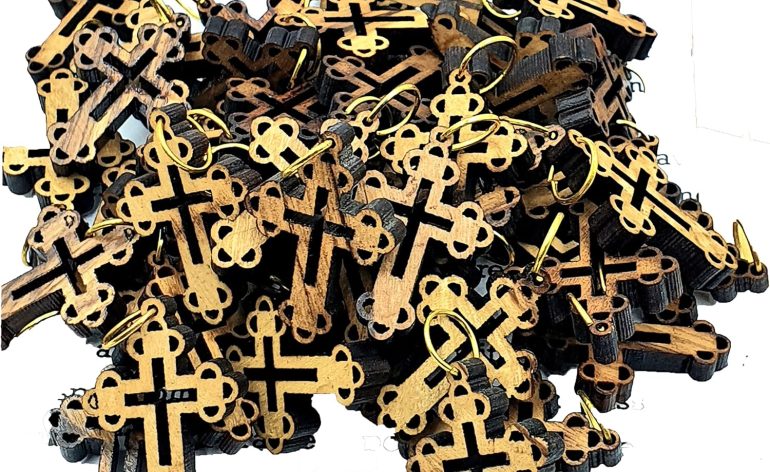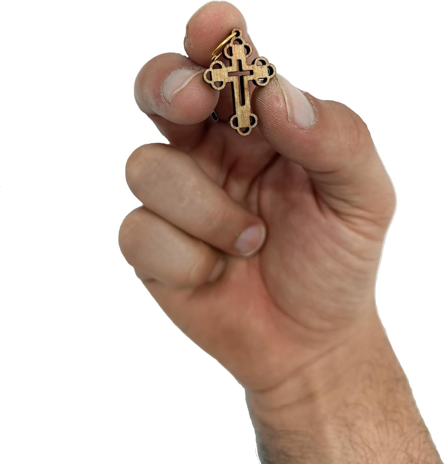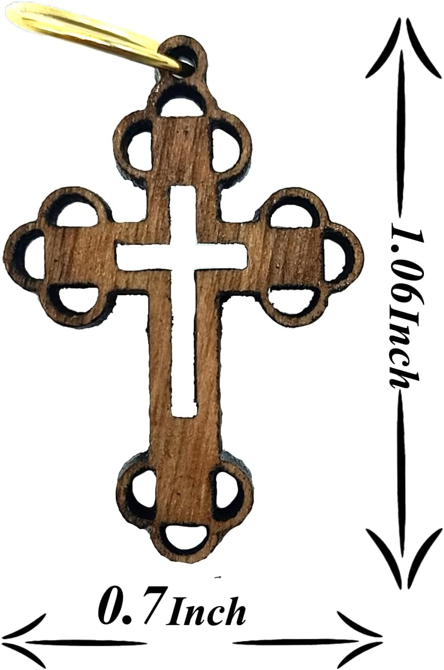 Zuluf 1.05 Inch Laser Carved Olive Wood Cross Charms 50 PCS – Handcrafted Jerusalem Pendants for Christian Rosary, Jewelry Making & Holy Land Gifts – PEN217