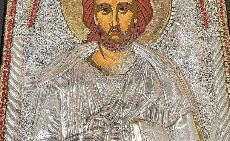 Russian Greek Orthodox Jesus Icon Hand carved Hand painted by Master Silver Smiths Byzantine Greek Russian Orthodox Religious Christianity 9″ x 6.5″ (22.5 cm x 16.5cm) HANDMADE Solid Silver Christian Icon ANTIQUE VINTAGE Checked , Stamped and Approved by the Cyprus Government European Union Assay Office This famous Handmade Greek Russian icon portrays God Jesus Christ the Teacher WISDOM Sophia Wisdom of GOD It is a representation of Jesus as Holy Wisdom.