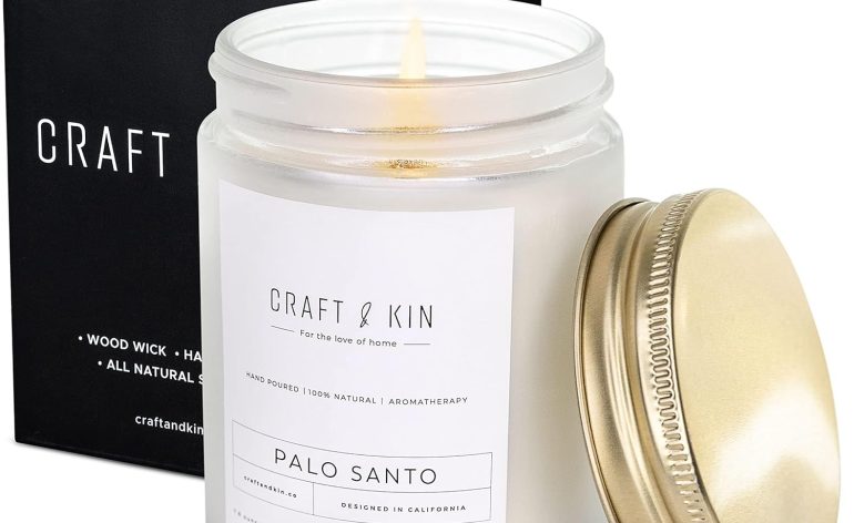 Craft & Kin Palo Santo Scented Candle | 8 Oz 45 Hour Long Lasting | Classic Soy Spring Scented Candles Wood Wick | Made with Natural Soy | Gifts for Men and Women