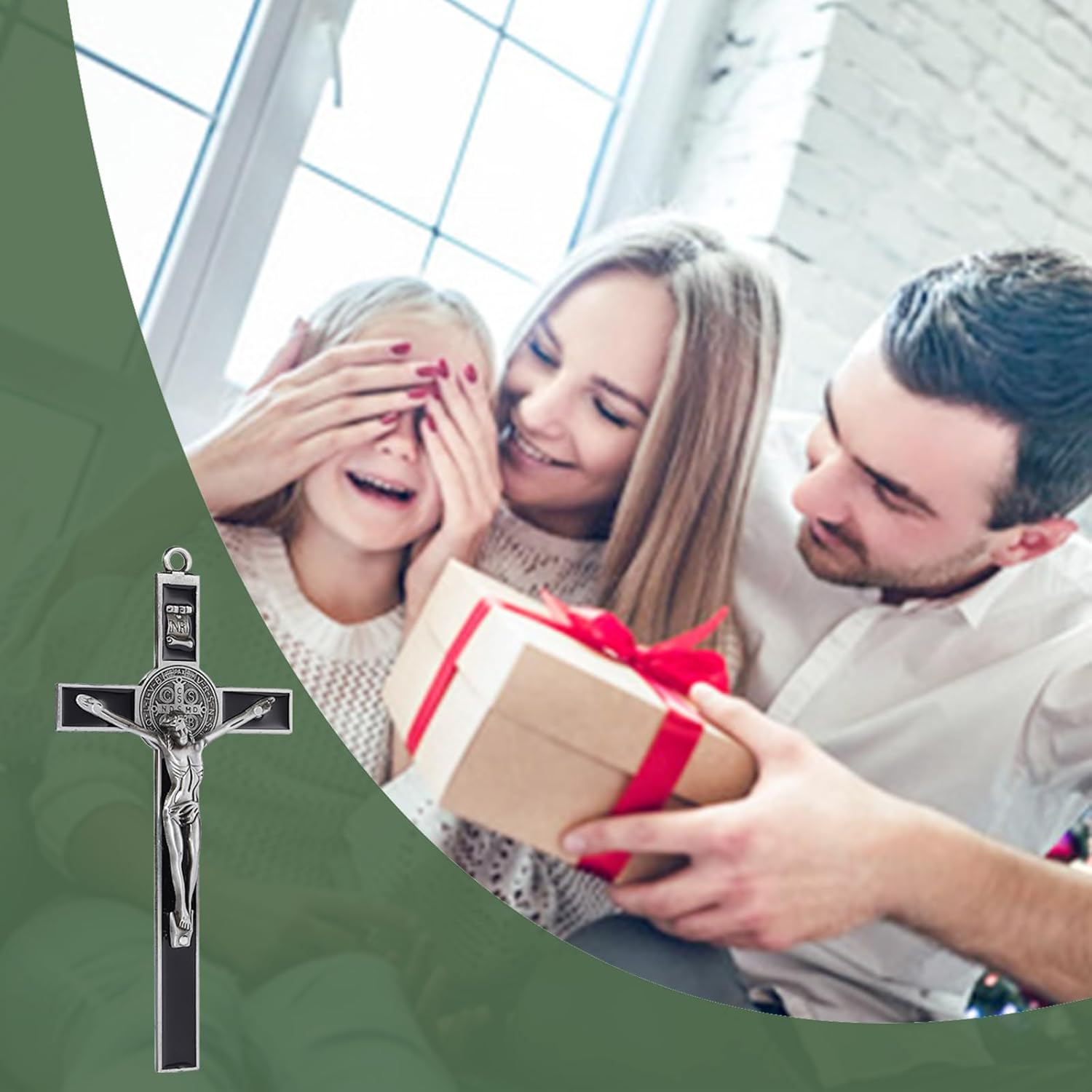 Imerance Crucifix Saint Benedict Black Enamel Crucifix Wall Cross 8 Inch a Meaningful and Cherished Gift, Convey Blessings and Good Wishes