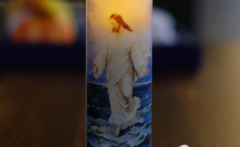 NONNO & ZGF Moving Wick Jesus Flameless Prayer Candle, Real Wax, God Devotion Bright Flickering Candles with Remote Timer Function, Battery Operated
