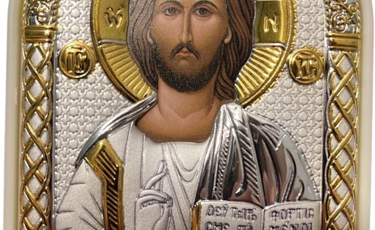 Silver Canvas (PL-3/001G/B) Jesus Christ Byzantine Silver Christian Orthodox Icon/Greek Handmade (White, 5 x 3)