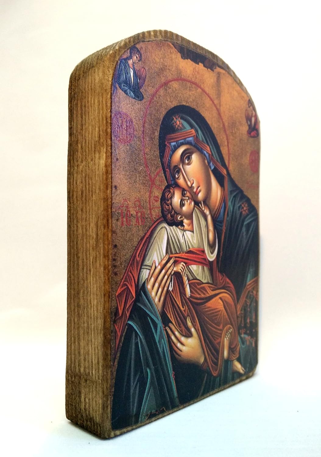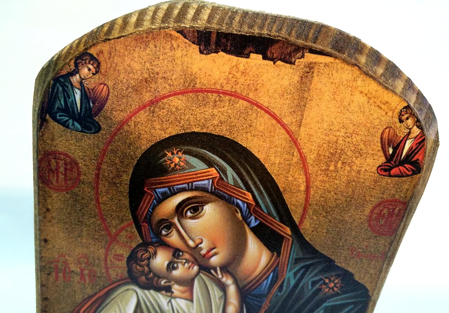 Wooden Greek Orthodox Icon of Mother Of Jesus &Jesus Christ LENGTH: 13 CM OR 5.1 IN – WIDTH: 9 CM OR 3.5 IN. Our icons are made of the highest quality silkscreen on specially treated wood with advanced aging techniques and other quality materials that ensure the waterproofing and protection from solar radiation. All the icons are unique and original, in high quality made by hand after your order.