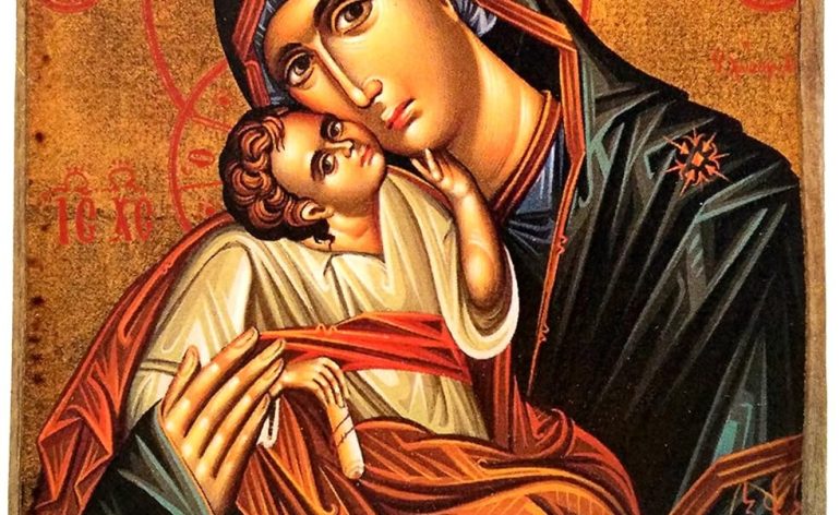 Wooden Greek Orthodox Icon of Mother Of Jesus & Jesus Christ
