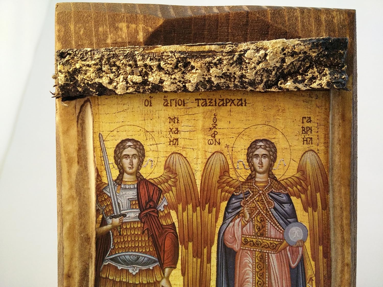Handmade Wooden Greek Christian Orthodox Mount Athos Icon of Archangel Michael and Gabriel / Mp3