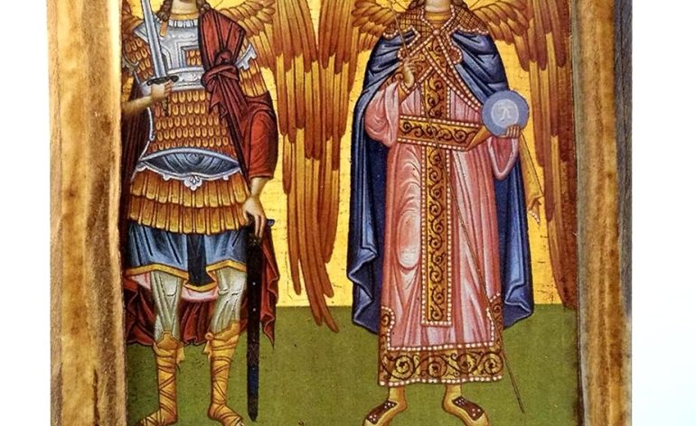 Wooden Greek Orthodox Icon of Archangels Michael And Gabriel