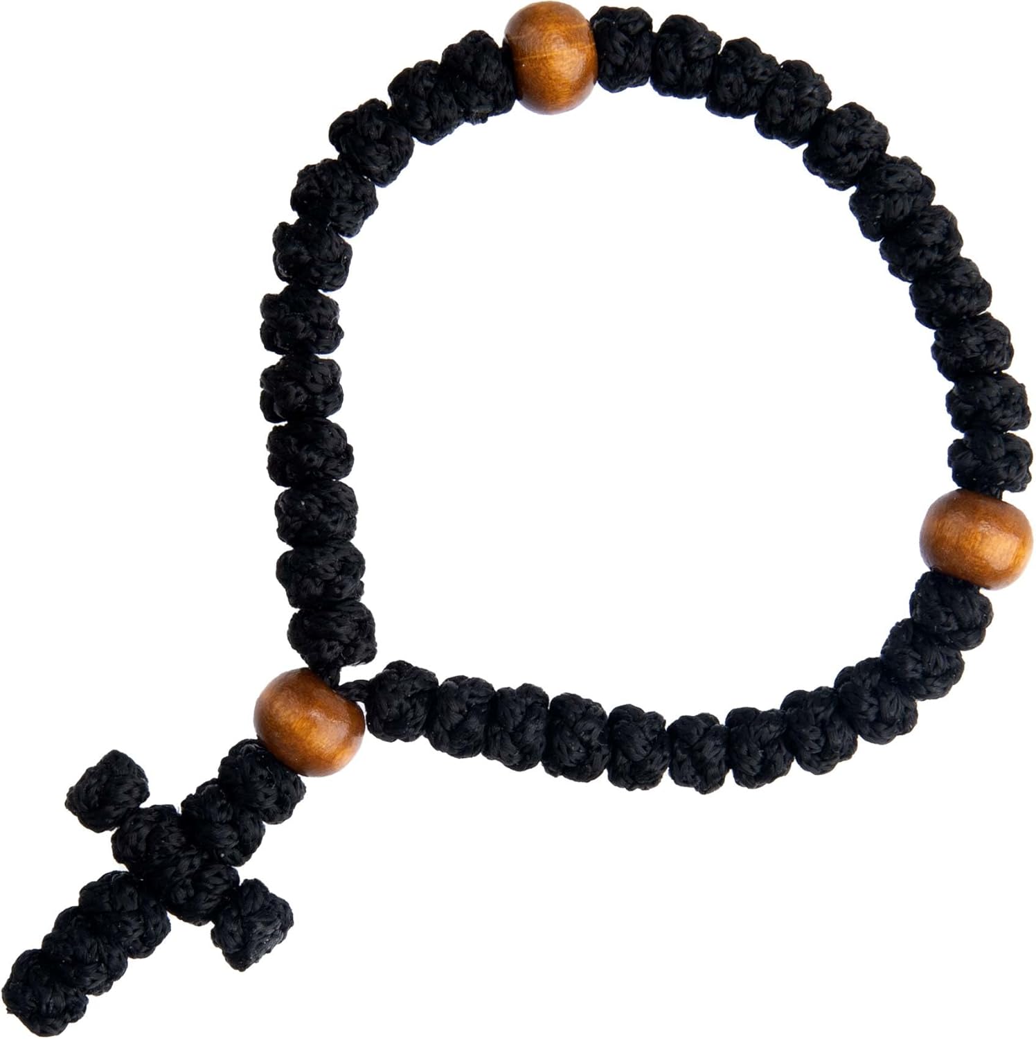 Isslly Handmade 33 Knot Prayer Rope, Traditional Blessed Cross Charm, Orthodox Christian Prayer Cord with Wooden Beads for Men & Women- Black