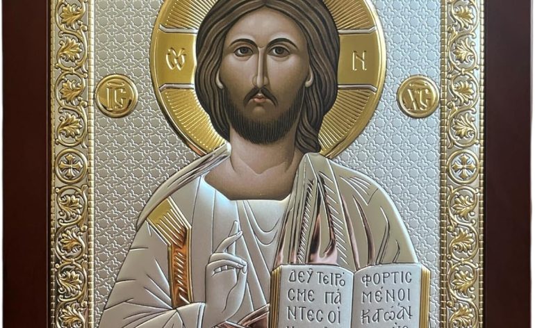 Silver Canvas (PR-4/001G/K) Jesus Christ Byzantine Silver Orthodox Christian Icon/Greek Handmade (Red, 7 1/2 x 6)