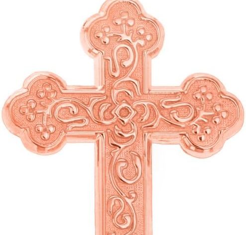 Religious Jewelry 10k Rose Gold Eastern Orthodox Floral Rose Cross Pendant