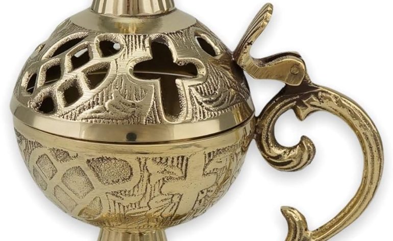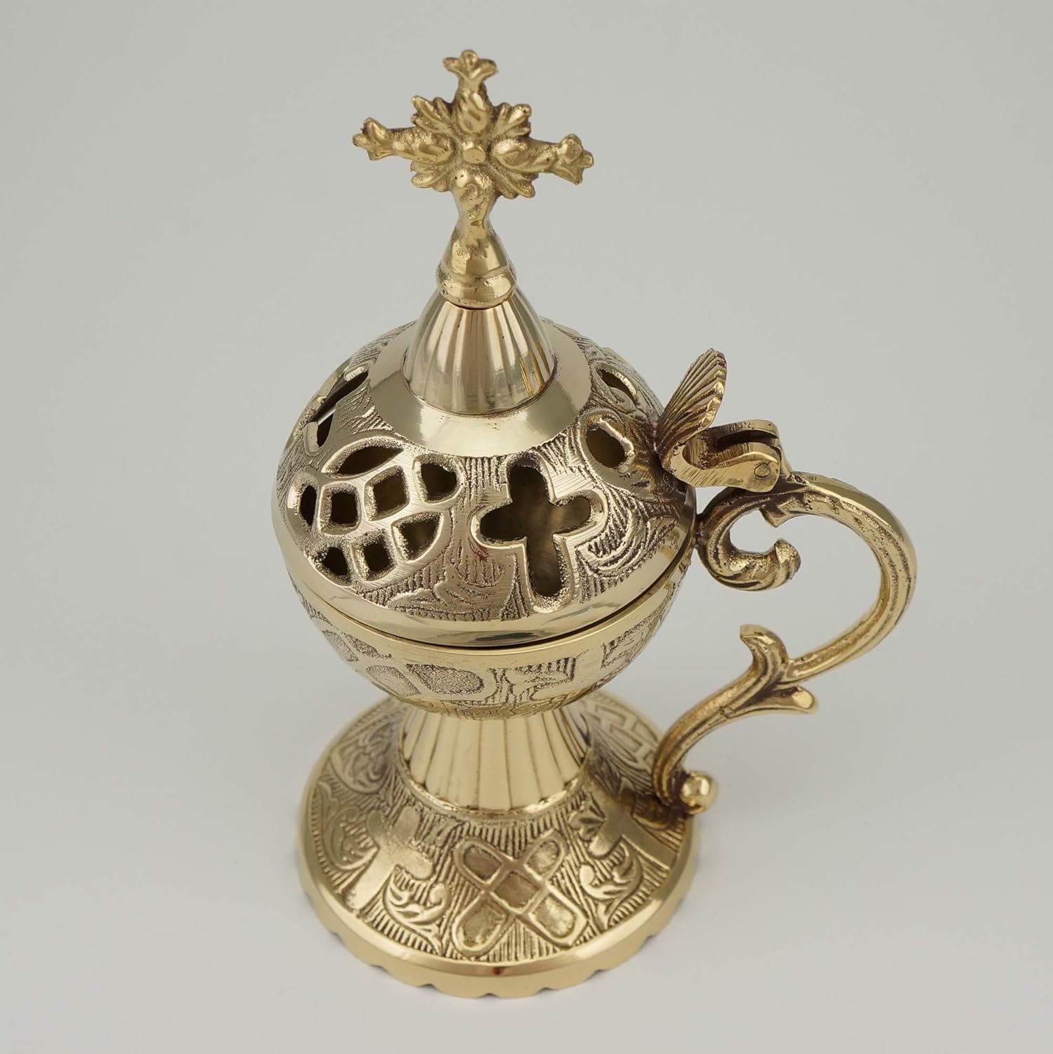 Orthodox Incense Burner – Ornate Christian Censer with Cross for Home or Church Use, 6.7 inch