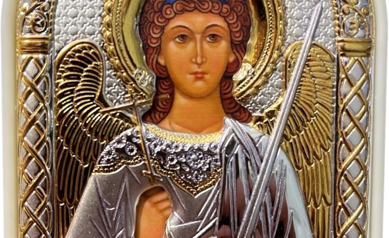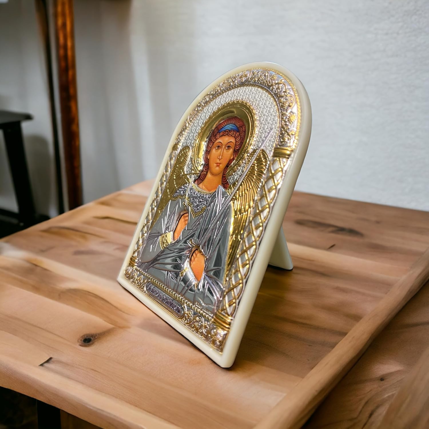 Silver Canvas (PL-3/007G/B) Guardian Angel Byzantine Silver Orthodox Icon/Greek Handmade (White, 5 x 3)