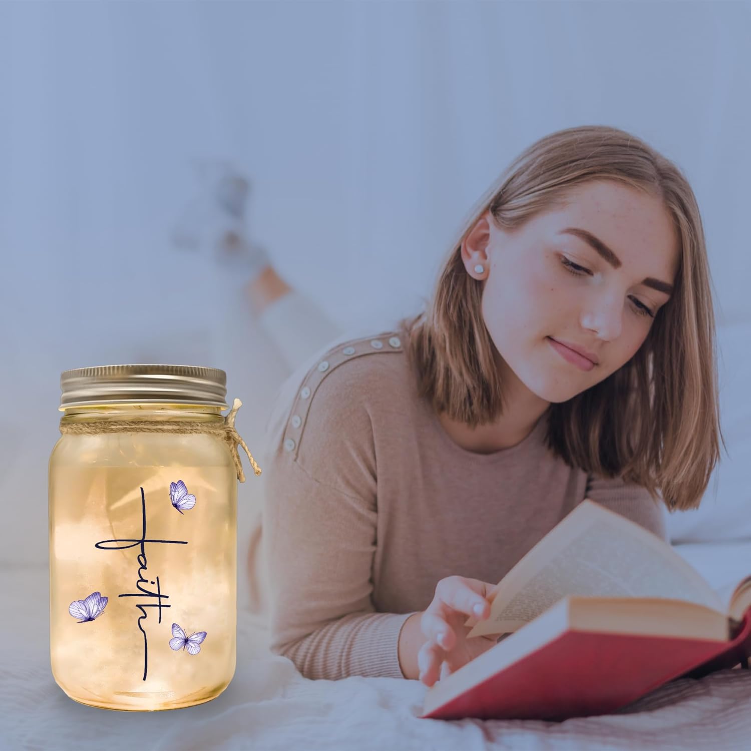 Religious Gifts for Women Christian Mason Jar Lamp – Easter Mothers Day Inspiration for Mom Bible Encouragement Gifts for Women – Faith Jar 14oz Nightlight Bible Scripture for Mom Nana Girlfriend