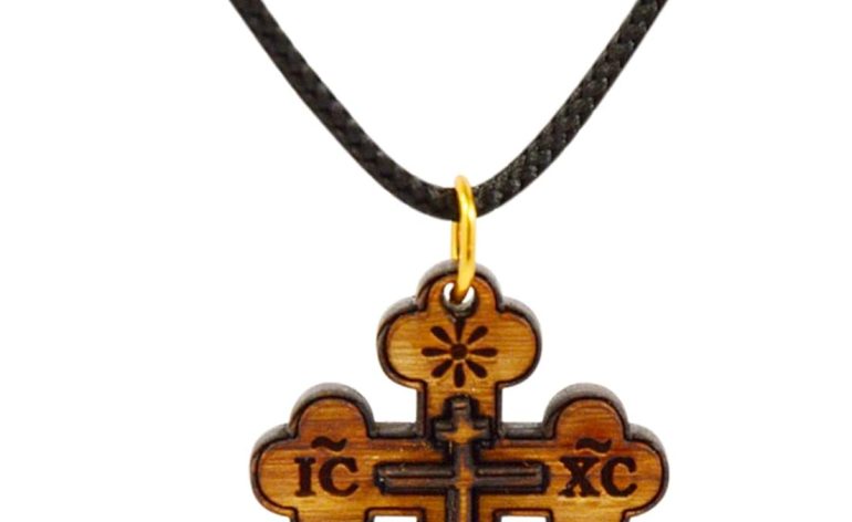 Most Original Gifts AUTHENTIC Bethlehem Olive Wood Eastern Cross Pendant in Natural Cotton Pouch with Christogram – Cross for Men & Women