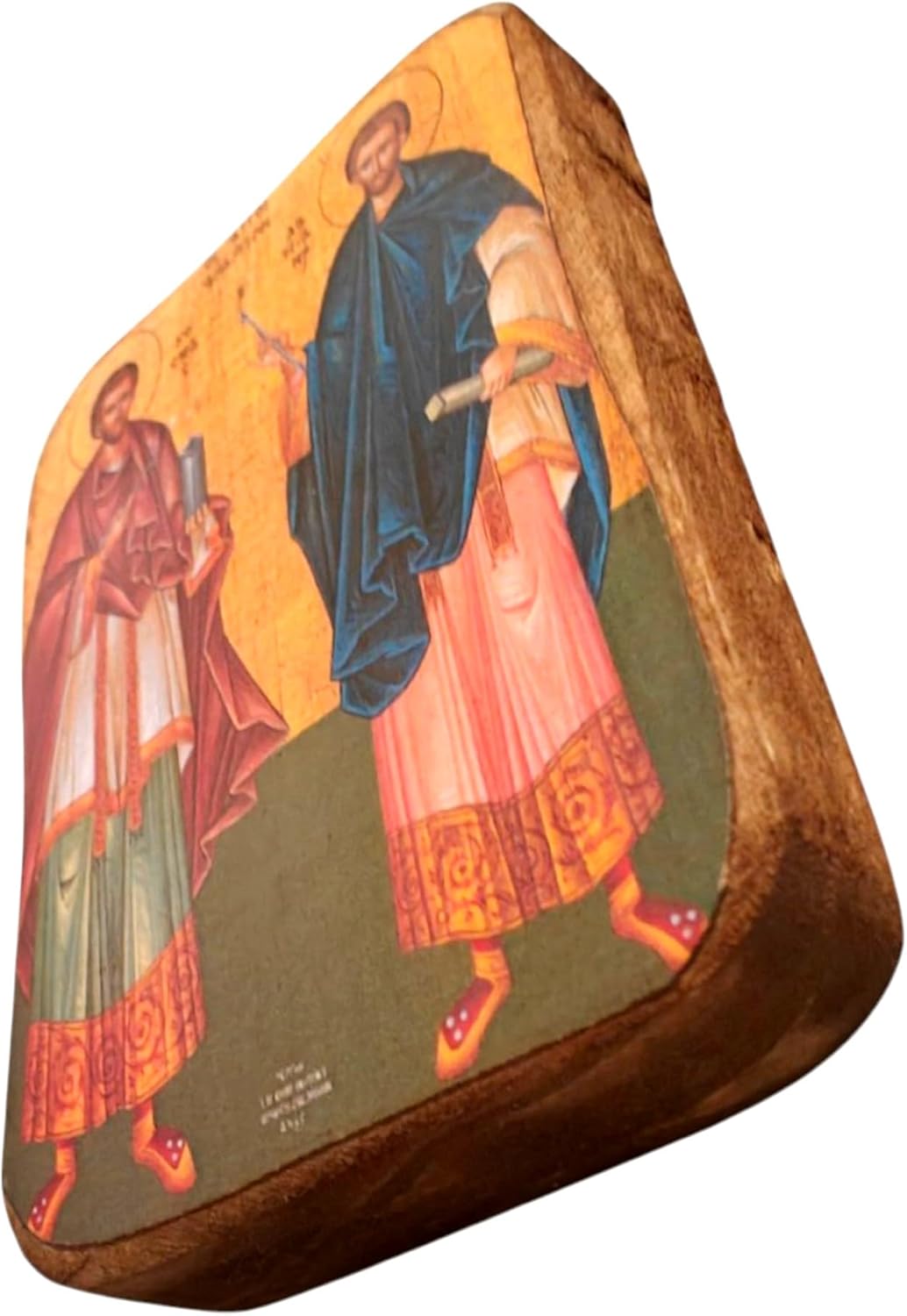 Wooden Greek Orthodox Icon of Unmercenaries – Saint Kosmas and Saint Damian Patron Saints of Surgeons, Doctors