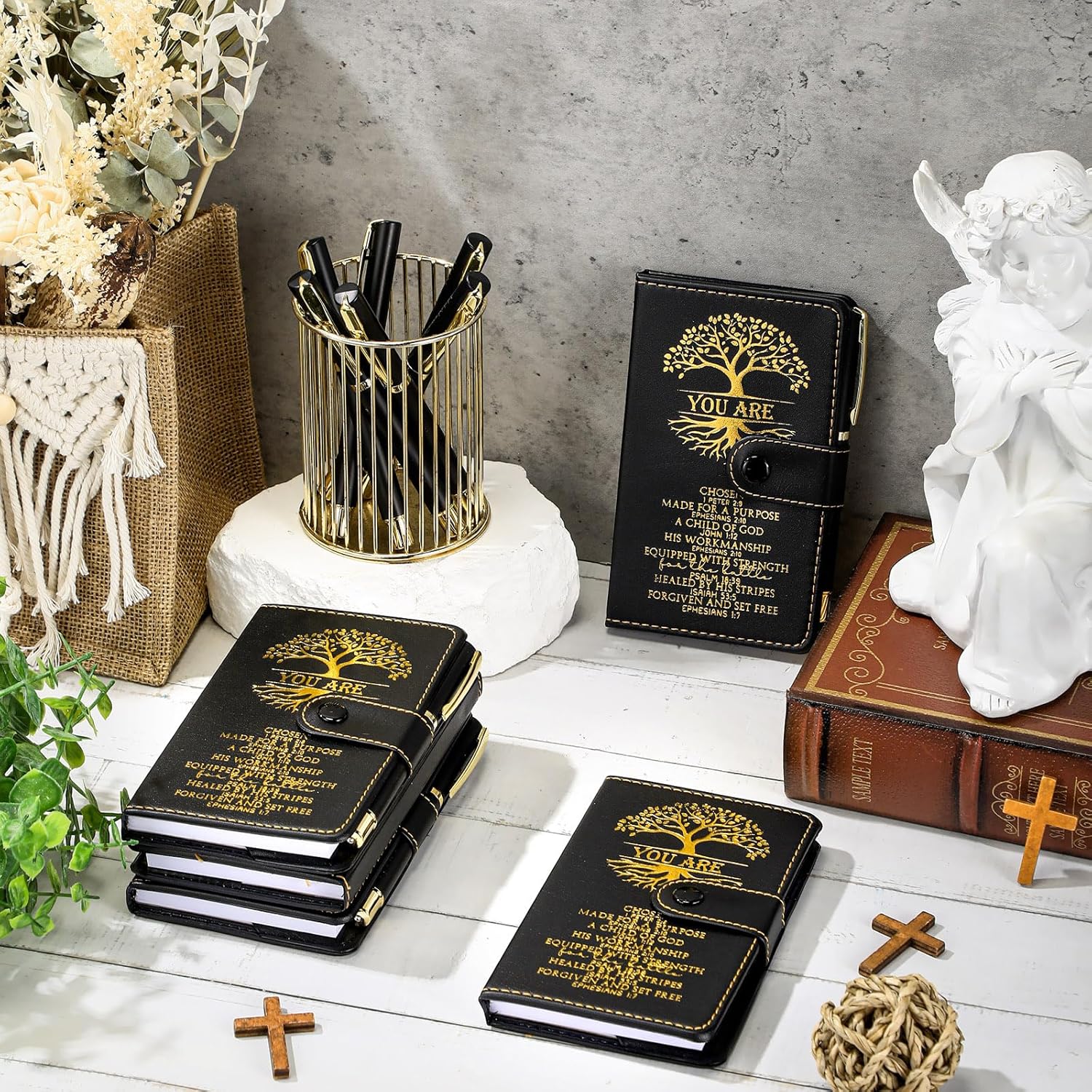 Thenshop Christian Gifts Church Bible Verse Leather Prayer Journal A6 Religious Notebook Scripture Notepad with Pen for Men Women Sunday School VBS Gifts(Black,10 Sets)