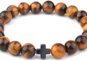 Christian Prayer Beads on Elastic Bracelet – Beautiful 8MM Tiger Eye Beads + Wooden Cross – 22 Bead Bracelet or 33 Bead Pocket Prayer Rope! Great Gift for Friends & Family!