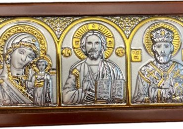 (AP-4/G) Car Protection Travel Silver Orthodox Christian Icon/Greek Handmade (Savior, Virgin Mary of Kazan, Nicholas)