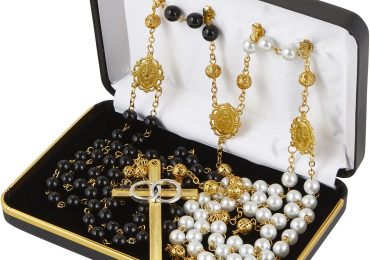 Beautiful Lasso Rosary with lustrous ivory and jet black faux pearls and gold plated centerpiece and cross. Cross features 2 silver rings symbolizing the Continue Reading