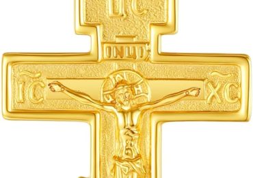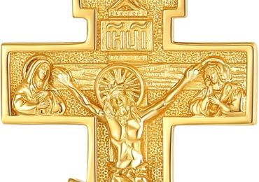 INFUSEU Cross Necklace for Men Women, Sterling Silver Gold Large Orthodox Cross Caravaca St Michael Pendant, 22+2 inch Chain