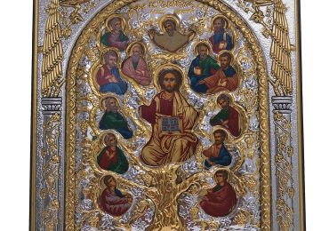 Christian silver orthodox icon, created according to the byzantine art of iconography. The size may vary, due to the handmade manufacturing process.