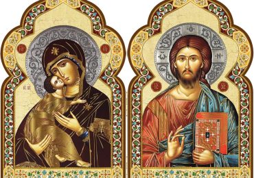 A beautiful matching icons set - diptych Virgin of Vladimir and Jesus Christ the Teacher - Religious Gift Idea