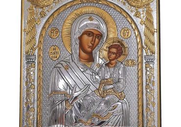 Christian silver orthodox icon, created according to the byzantine art of iconography. The size may vary, due to the handmade manufacturing process.