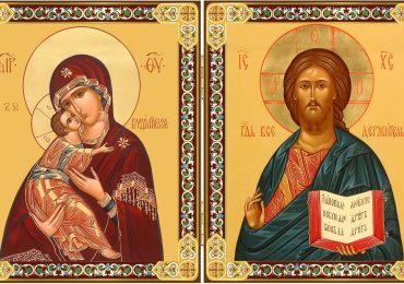 Image of Jesus Christ The Teacher and Virgin of Vladimir Byzantine Icon Set Pair - Gold Foil icons - perfect as orthodox wedding gifts Continue Reading